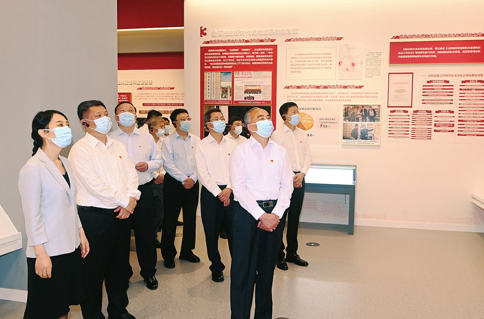 7月5日上午,省委书记林武,省委副书记、省长蓝佛安等领导在省党风廉政教育基地,观看“牢记初心使命”党风廉政教育大型主题展。山西日报记者 李联军摄