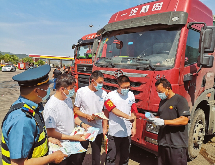 6月16日上午,山西省高速公路综合行政执法总队太原支队六大队在静乐服务区开展“安全生产宣传咨询日”活动,引导群众提升安全意识,关注安全、关爱生命。杜文军摄