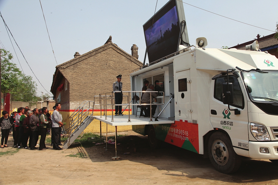 山西农信流动服务车深入农村开展普惠金融服务。
