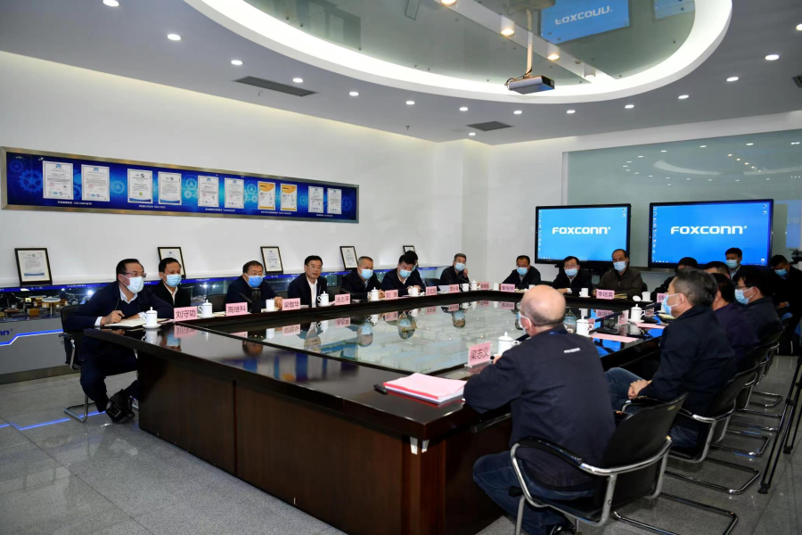 富士康(太原)科技工业园(以下简称“富士康园区”)是我省首个工业总产值超千亿元的电子信息制造企业,也是省重点高科技企业和外贸龙头企业。汤志平来到富士康园区C5高端智能手机主板制造车间、A8高端智能手机全球维修车间,参观生产线,详细了解了企业科技创新、装备水平、工艺流程及生产调度、精细化管理等情况。在随后召开的座谈会上,他认真听取企业生产经营、进出口情况汇报,深入了解企业供应链管理、劳动用工、要素保障和安全生产、疫情防控相关情况,询问企业发展预期和存在的困难挑战,对企业需要支持的事项逐一进行回应,并就促进企业平稳发展和外贸稳增长提出指导意见。