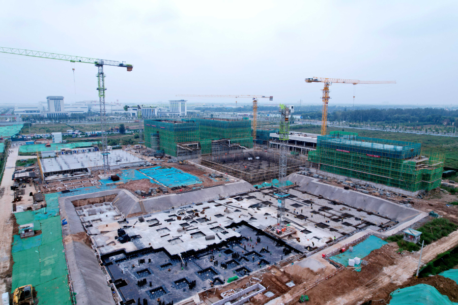 走进项目施工现场,塔吊林立,多栋单体高高矗立。机器轰鸣声与金属敲击声交织,施工人员分布在各个作业面绑扎钢筋、拆除模板、砌筑墙体……铆足干劲加快工程建设。“6月底进入主体施工,目前初中A、B教学楼和小学1#、2#教学楼封顶,小学3#教学楼二层结构施工完成,宿舍楼三层接近收尾,综合楼A隔震层基础浇筑完成,综合楼B地基正在收尾。当前,所有单体都在同步推进,部分封顶单体已启动二次结构施工。”项目人员介绍,项目部正抢抓秋季有利施工环境,以首善标准全力推进民生工程建设。